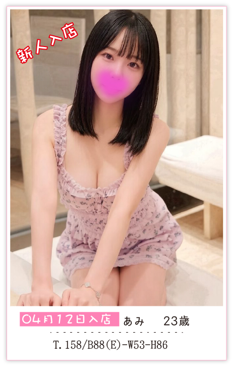 ★2026.04.12新人入店:あみちゃん(23歳・Eカップ)★ 細身で可憐、すごく優しい美人が入店しました。。 写真をご覧の通り、想像通りの美貌の持ち主で申し分なし!! 彼女のやさしく熱心なアロママッサージは日々の疲れを癒してくれ、相手を身体と心で包み込んでくれるような優しい性格。 「最高の時間をお客様に」。 まさに彼女にはこの言葉がびったりです♪☆ |
